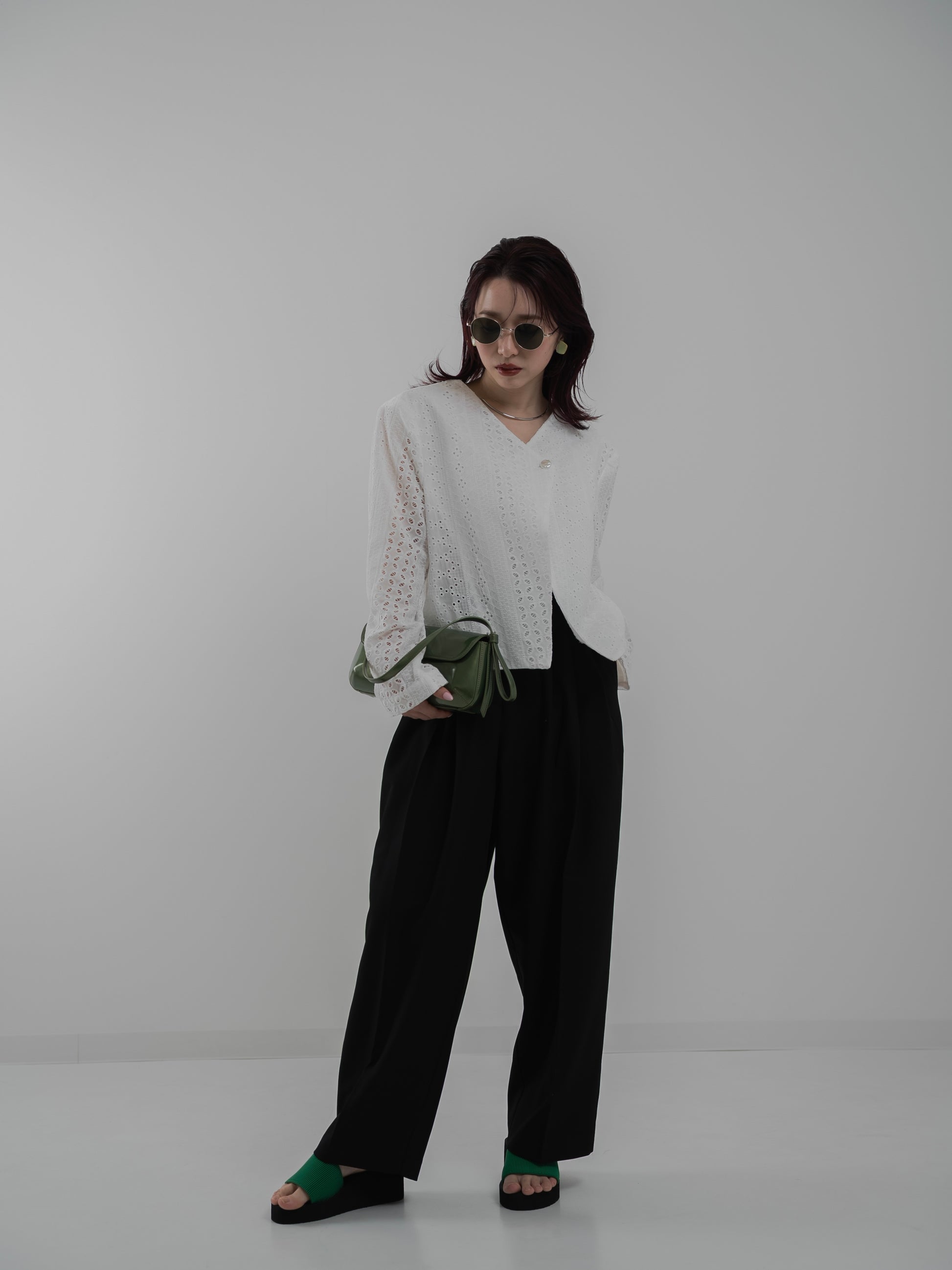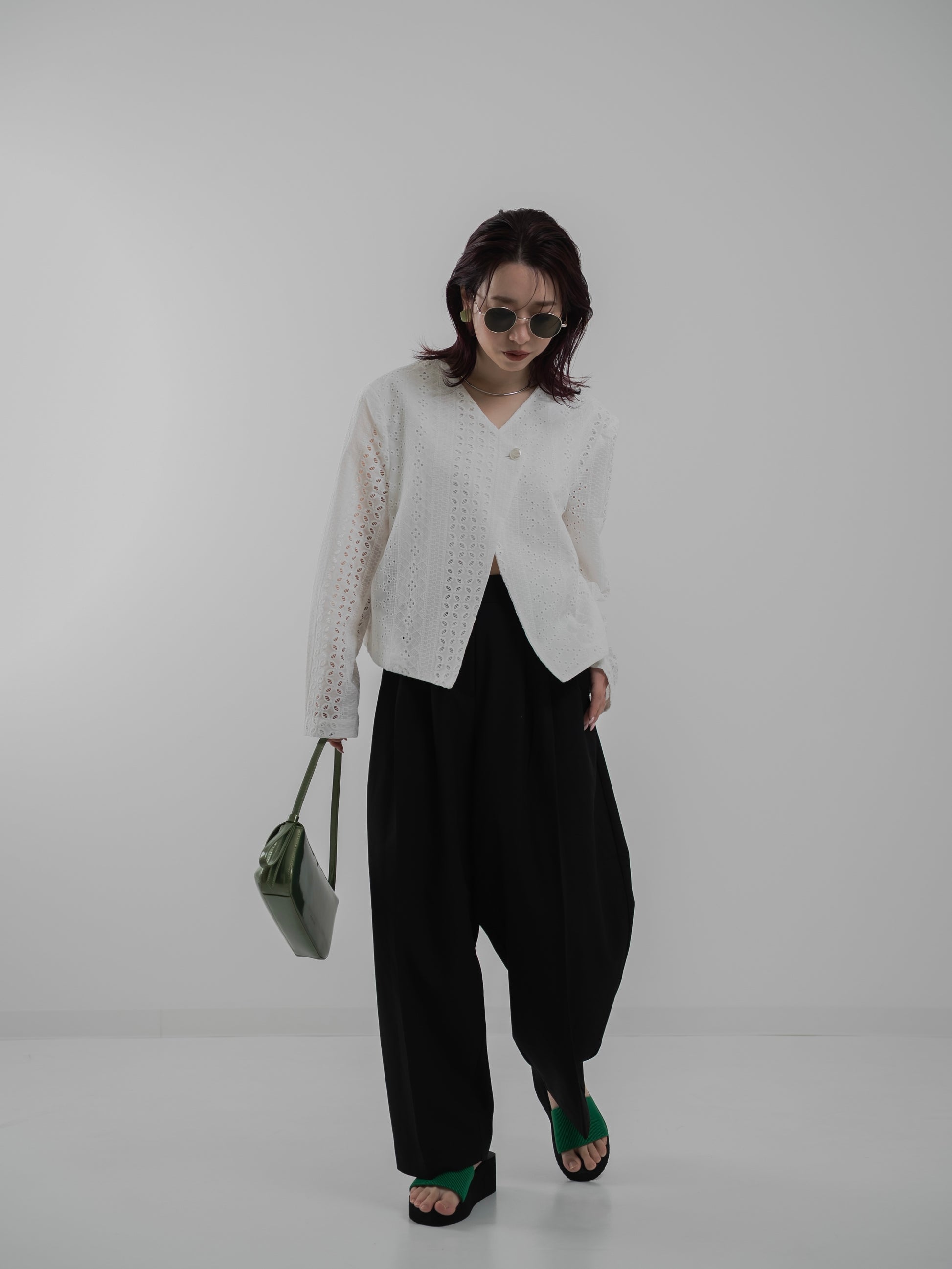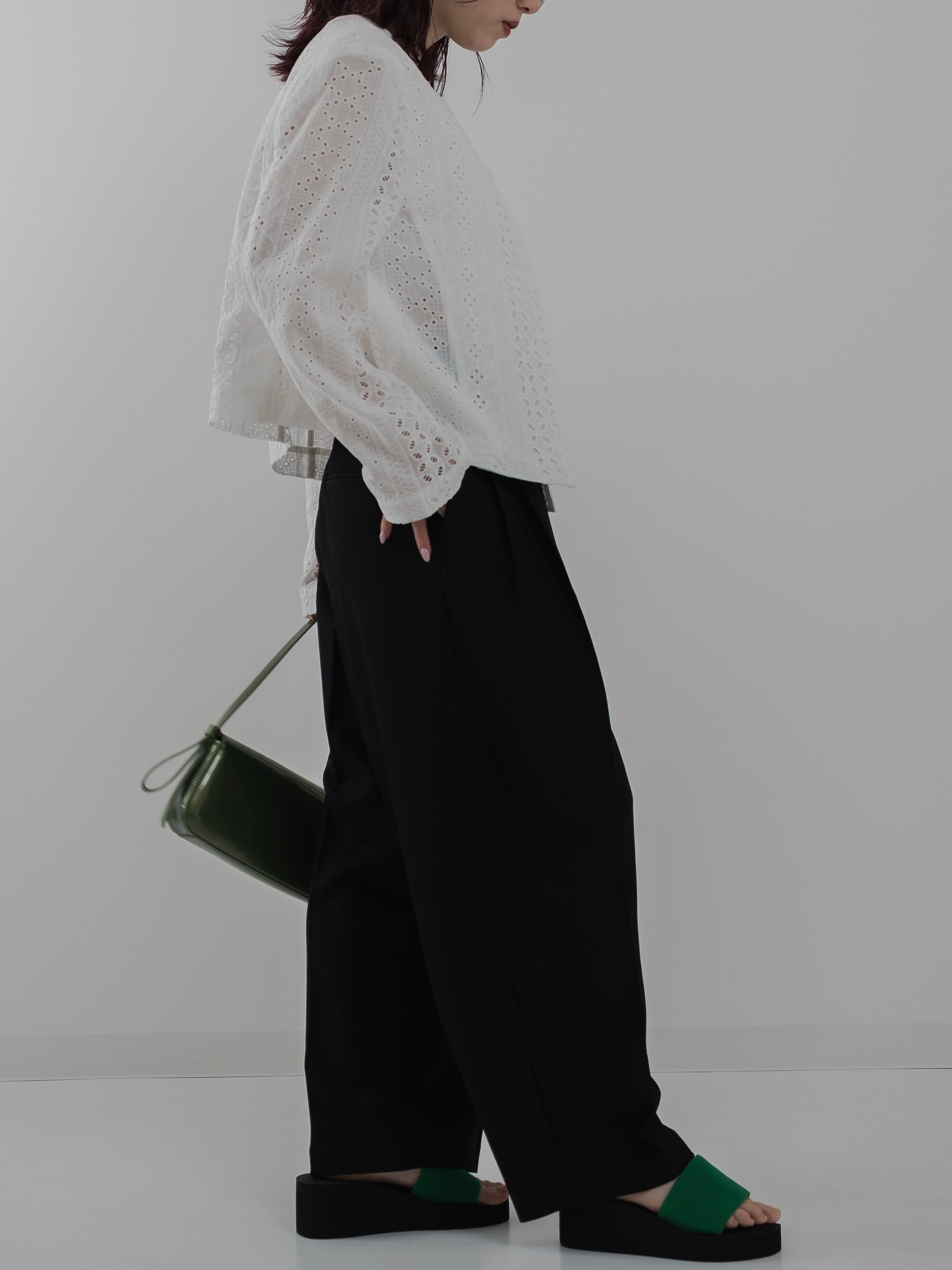 ・ワイドパンツと合わせて洗練された印象に