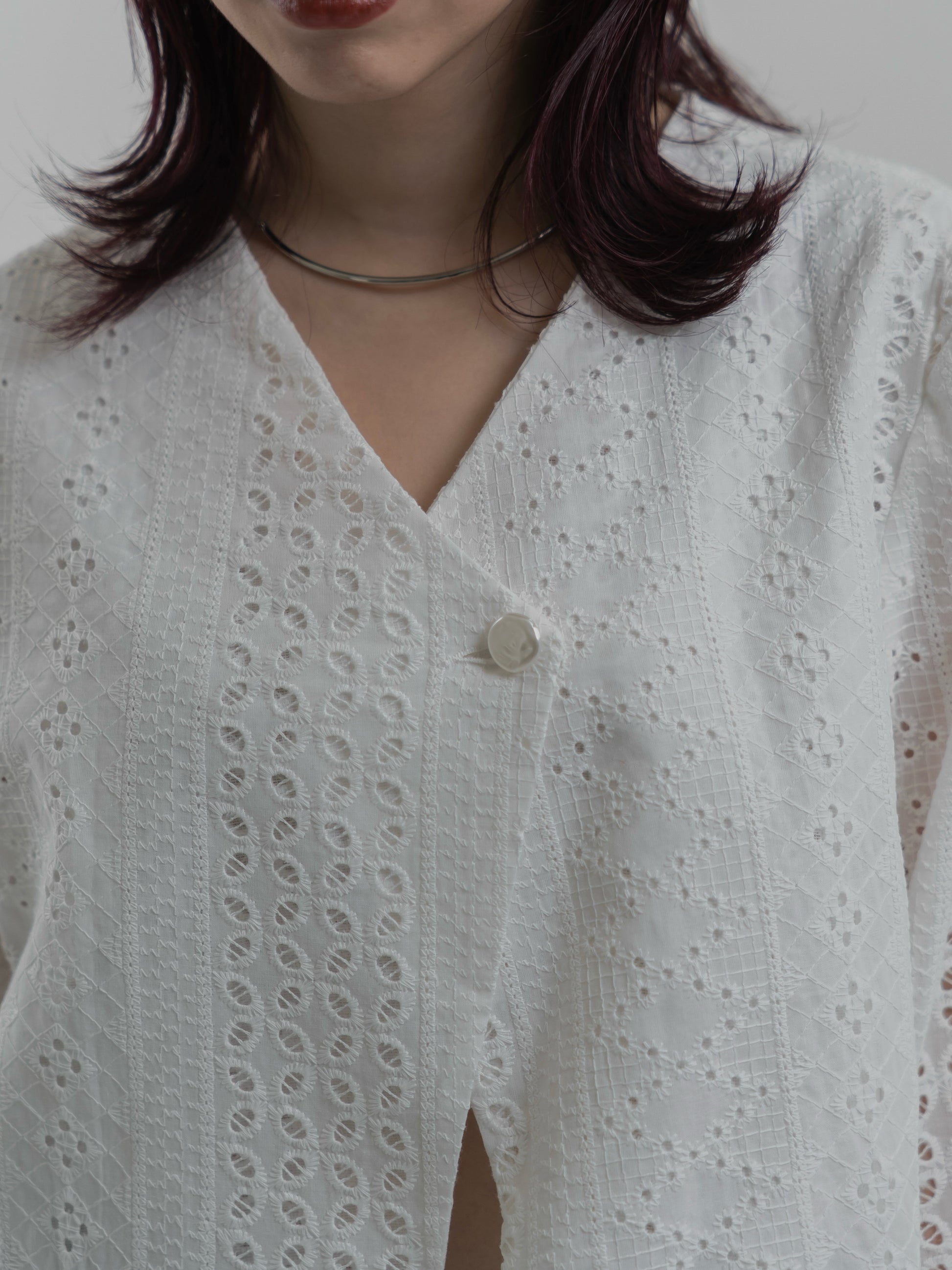 繊細な刺繍レース素材を使用。程よい透け感が軽やかさを演出し、