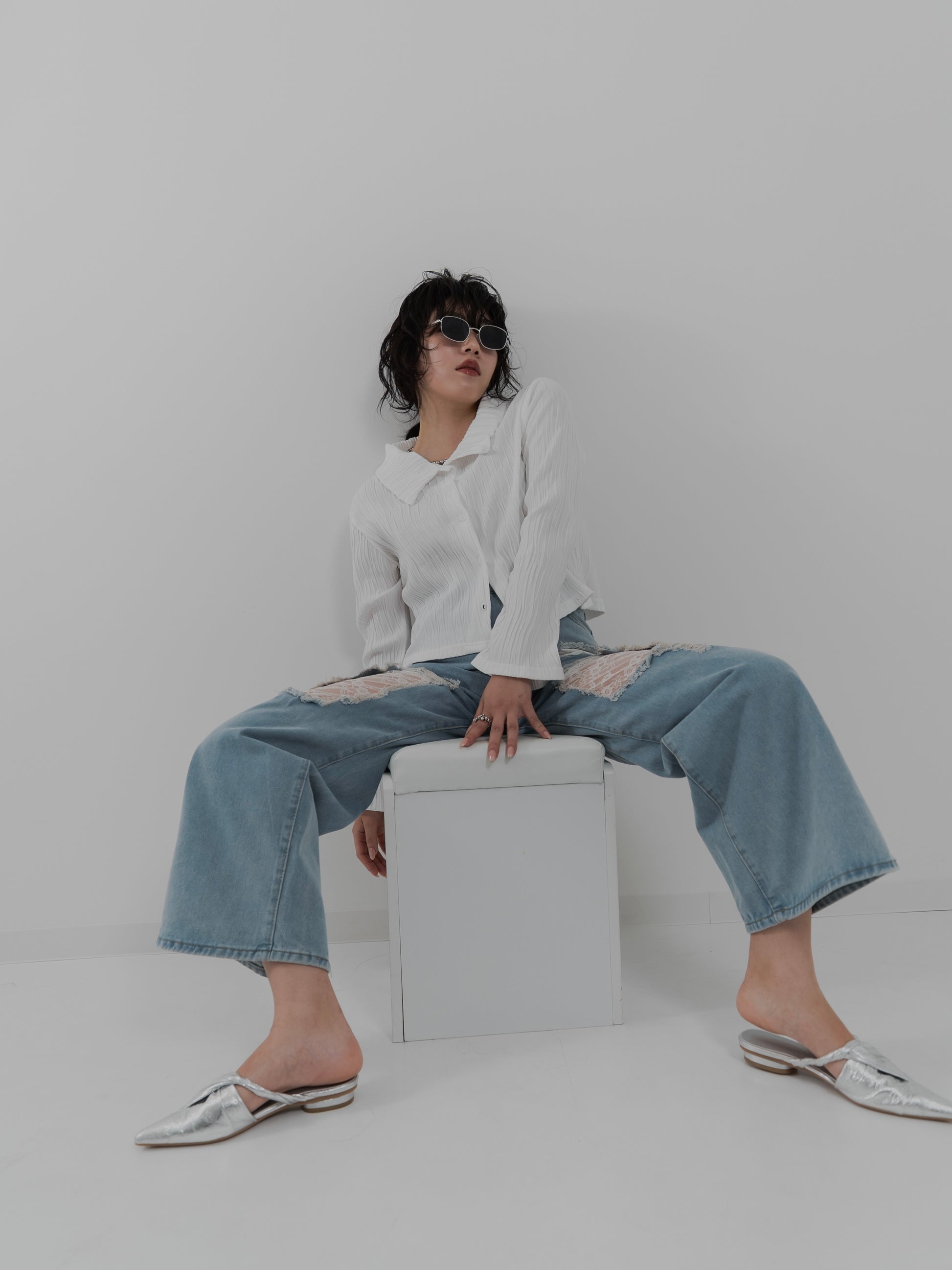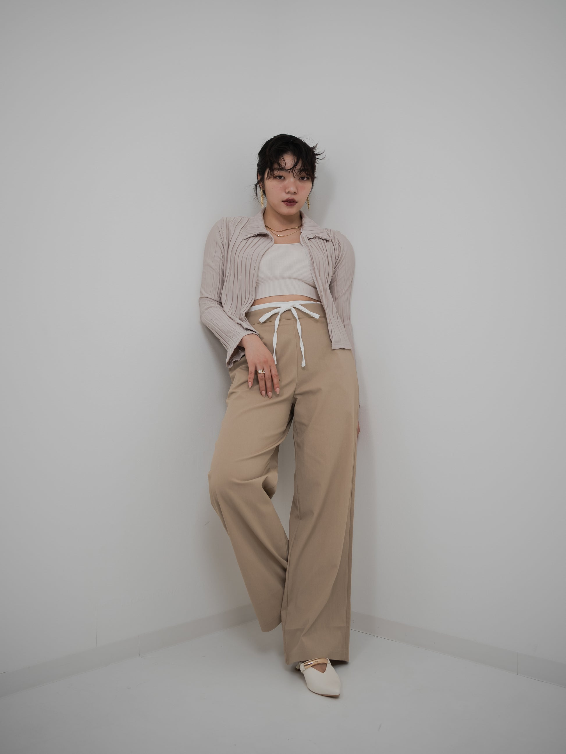 ハイウエストボトムとの相性がよく、スタイルアップして見えるシルエットに。